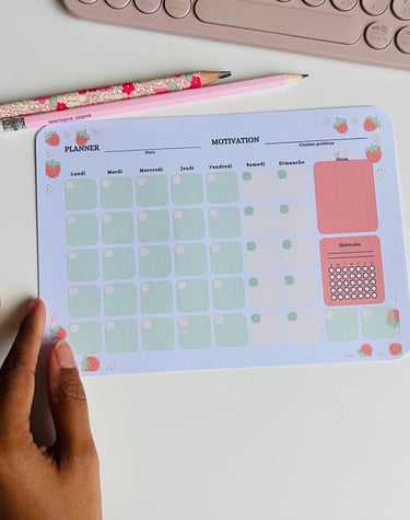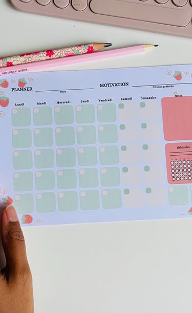 Du planificateur mensuel, à l'agenda perpétuel en passant par la pochette de rangement. Rien n'est laissé au hasard, pour faire de ton organisation, une habitude simple et efficace !